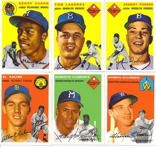 1994 Topps Archives 1954 Reprint Complete Mint Hand Collated 256 Card Set; It Was Never Issued in Factory Form. Loaded with Stars and Hall of Famers Including Jackie Robinson, Gil Hodges, Warren Spahn, Eddie Mathews, Pee Wee Reese, Yogi Berra, Phil Rizzuto, Willie Mays, Hank Aaron, Ernie Banks, Al Kaline, Roberto Clemente, Harmon Killebrew and More! Next Best Thing to Owning a Real 1954 Topps! Review
